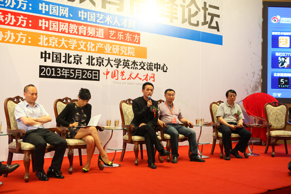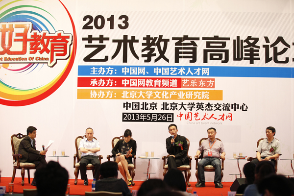 在中國好教育·2013藝術教育高峰論壇中,特別以“中國民辦藝術教育培訓的黃金十年”為主題,北京星干線藝術教育表演學科主管蔣鵬、中國藝術人才網總編輯程小強、歡校傳媒總經理欒文、中影集團北影影視學校董事吳衛東、紙模服裝發明人丁鎮參與該論壇,共議藝術教育的發展。該論壇由中國網教育頻道總監馮志軍主持。