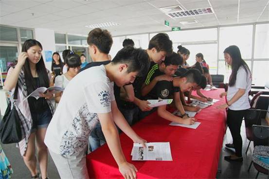 在現(xiàn)場,有些學(xué)生和家長正忙著咨詢星干線的老師;有些學(xué)生正在填寫報(bào)名登記表和繳費(fèi)。忙完這些的學(xué)生則由專門的老師安排食宿等問題,場面非常火爆。“這只是一部分學(xué)生,下午的時(shí)候陸陸續(xù)續(xù)還會有一部分學(xué)生來報(bào)到。”咨詢處的楊老師介紹。