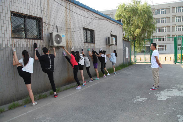一大早,舞蹈班的學員們就來到了北郵1號教學樓對面的籃球場,開始了他們長達一個小時的早功訓練。蛙跳、踢腿、壓腿這些訓練一點也不輕松,但是學員們還是認真的做好每一個動作,舞蹈課老師王恒親自在現場指導檢查。