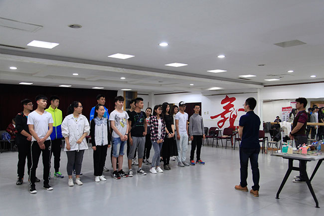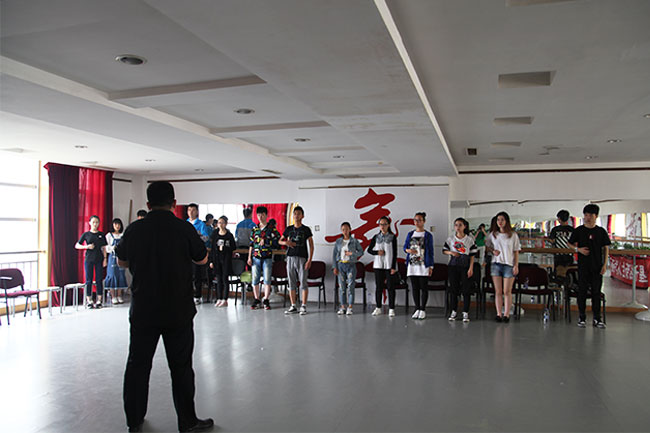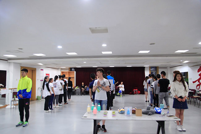 5月1日晚上,由編導(dǎo)專業(yè)張老師、播音專業(yè)譚老師、表演專業(yè)王老師分組帶領(lǐng)學(xué)員進(jìn)行解放天性、認(rèn)識(shí)自我及拓展訓(xùn)練課程,主要是幫助學(xué)員們解放天性、認(rèn)識(shí)自我,同時(shí)培養(yǎng)學(xué)員們團(tuán)隊(duì)意識(shí)。