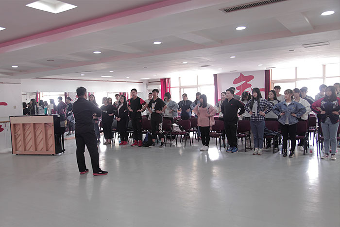 4月1日下午,由表演專業(yè)的王楠、李明利老師帶領(lǐng)同學(xué)們走進(jìn)了表演課堂。首先,李明利老師帶領(lǐng)同學(xué)們進(jìn)行了口腔操的練習(xí),讓同學(xué)們認(rèn)識到每一個發(fā)出的詞語更加飽滿、圓潤都必須經(jīng)過嚴(yán)格的訓(xùn)練,只有經(jīng)過專業(yè)的訓(xùn)練才可以有效地加強(qiáng)唇舌力量,提高唇舌靈活度,使發(fā)出的聲音更干凈明亮集中。