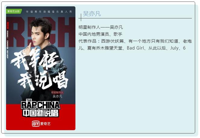 《中國新說唱》是由愛奇藝自制的音樂選秀節(jié)目,這是中國第一個以“劇集式”敘事理念制作的真人秀節(jié)目,也是第一檔華語青年說唱音樂真人秀。