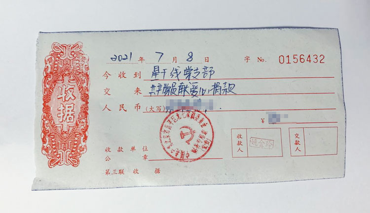 在喜迎建黨百周年之際,星干線黨支部發起為“愛心”捐款活動,遵循“自覺自原,量力而行”的原則,號召支部全體黨員為獻愛心工作自愿捐款。細細涓流,匯成大海;點點星光,點亮銀河。在全體支部黨員的踴躍捐款下,星干線黨支部于2021年7月8日,將收取的全部款項轉交至北京市昌平區北七家鎮黨委會,用于獻愛心工作。