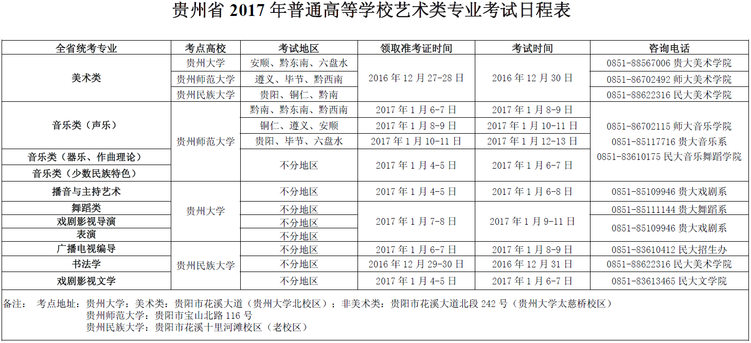 貴州省2017年普通高等學(xué)校藝術(shù)類專業(yè)考試日程表.pdf