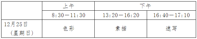 考試內(nèi)容為素描、速寫、色彩三門。分值各為100分。考試時間為素描180分鐘、速寫30分鐘、色彩180分鐘。