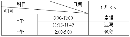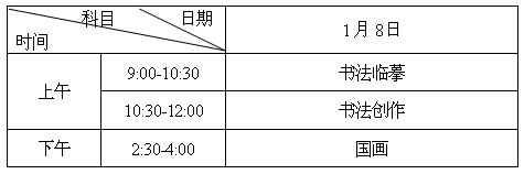 考試時間安排與普高美術類相同。2017年1月2日考生憑《專業考試證》、第二代居民身份證到湖南師范大學工程與設計學院報到繳費,參加專業考試。