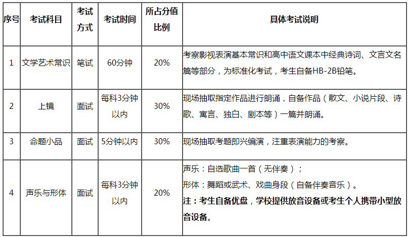 哈爾濱師范大學2018年黑龍江表演(影視)專業考試說明