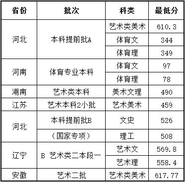 (注:以上美術類所示分數為文化課與專業課成績之和,體育類所示分數為專業課成績)