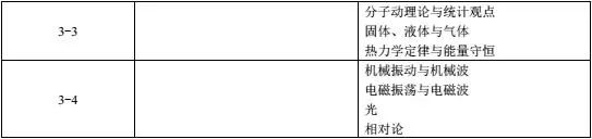 考慮到課程標準中物理知識的安排和高校錄取新生的基本要求,考試大綱把考試內容分為必考內容和選考內容兩類,必考內容有 5個模塊,選考內容有  2個模塊,具體模塊及內容見表1。除必考內容外,考生還必須從 2個選考模塊中選擇  1個模塊作為自己的考試內容。必考和選考的內容范圍及要求分別見表 2和表  3。考慮到大學理工類招生的基本要求,各省(自治區、直轄市)不得削減每個模塊內的具體考試內容。