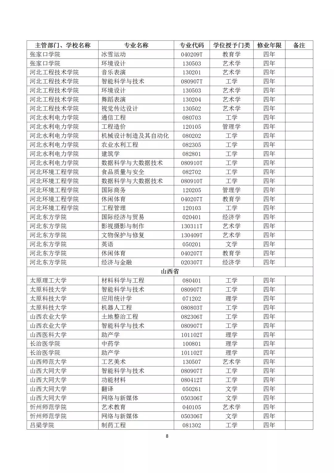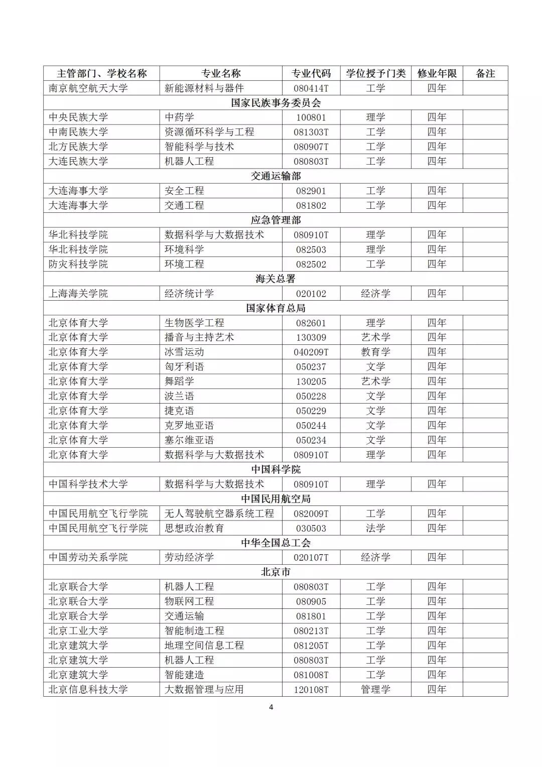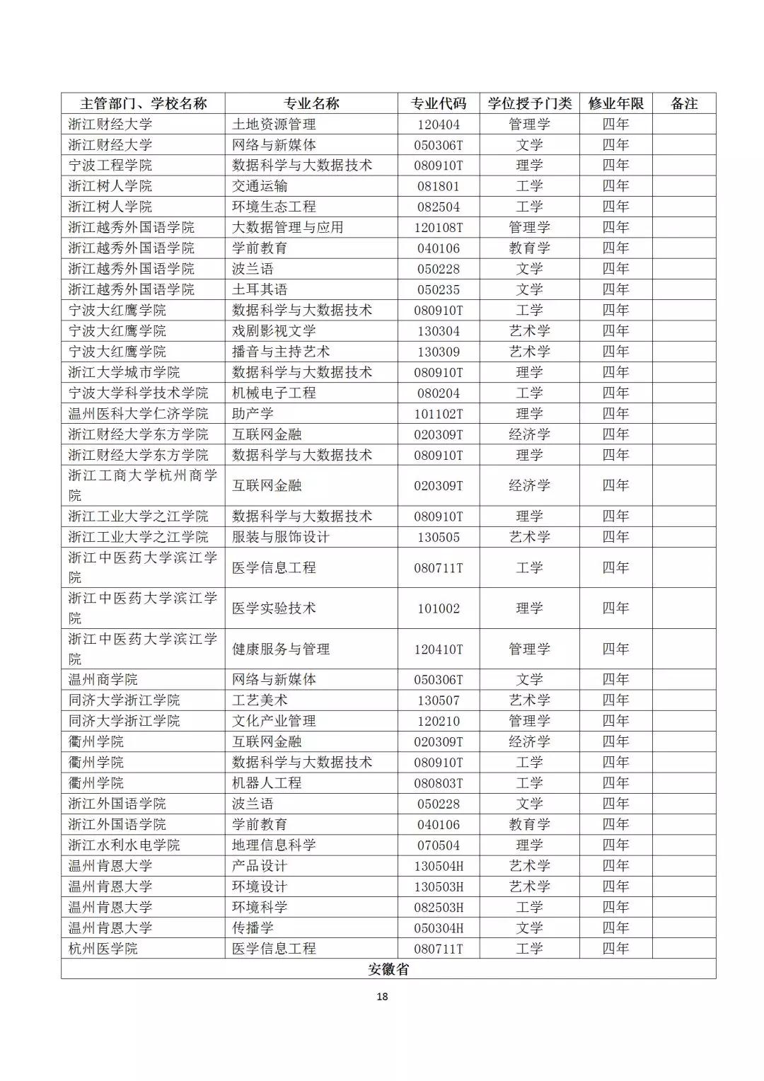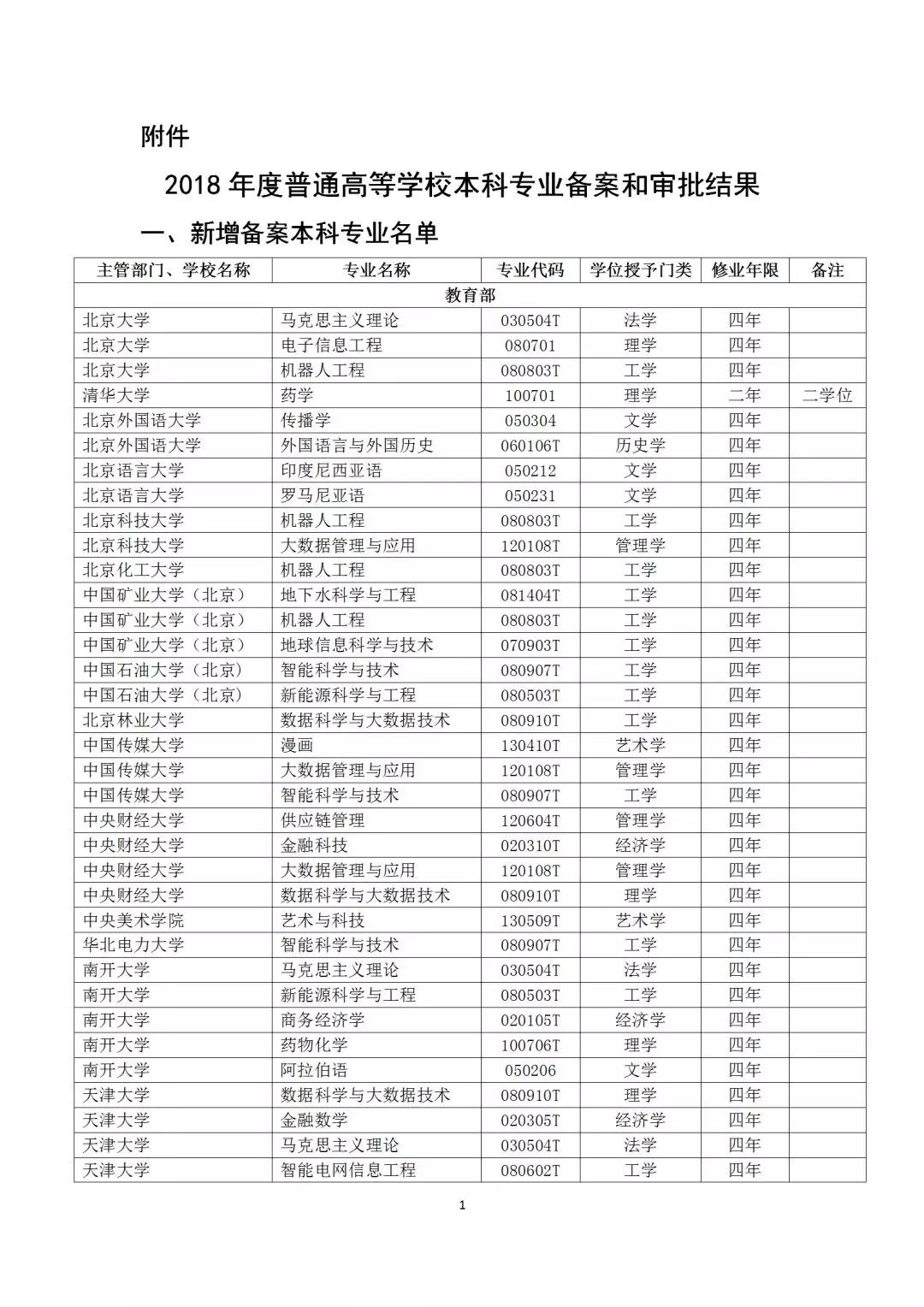 3月29日,教育部印發(fā)通知,公布2018年度普通高等學(xué)校本科專業(yè)備案和審批結(jié)果,確定了同意設(shè)置的備案專業(yè)、國(guó)家控制布點(diǎn)專業(yè)和新增目錄外專業(yè)點(diǎn)名單。