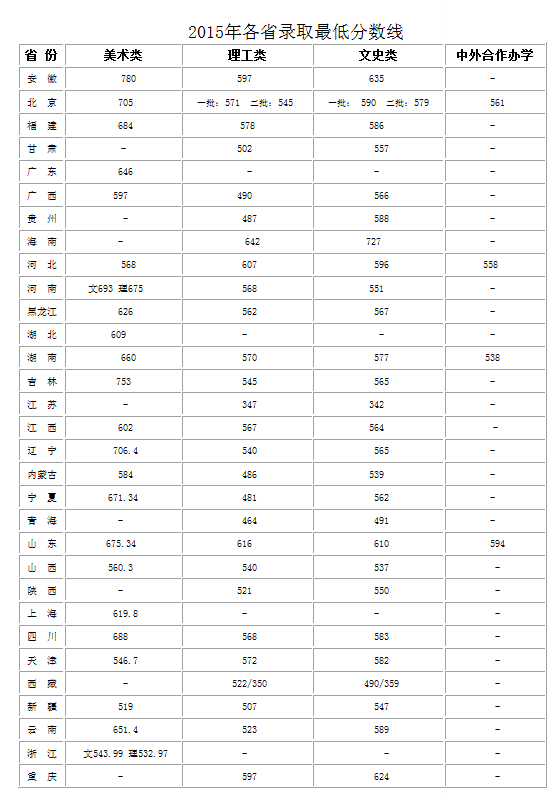 ♦美術(shù)類公布的最低分為專業(yè)成績(jī)和文化成績(jī)均符合我校錄取條件的最低合成分?jǐn)?shù)。(平行志愿方式下為最低投檔分)