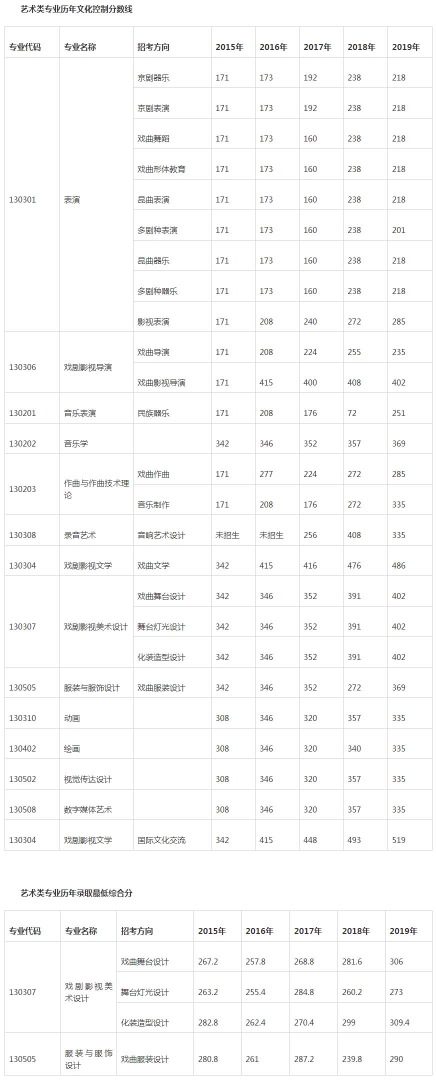 藝術(shù)類專業(yè)歷年文化控制分?jǐn)?shù)線