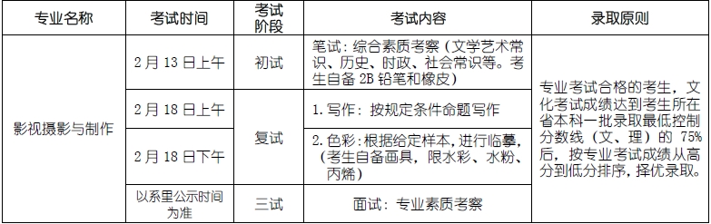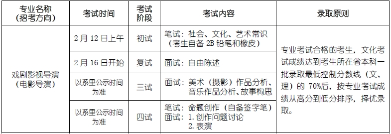專業(yè)要求: 報考戲劇影視導演專業(yè)的考生,要求聽力正常,無色盲。