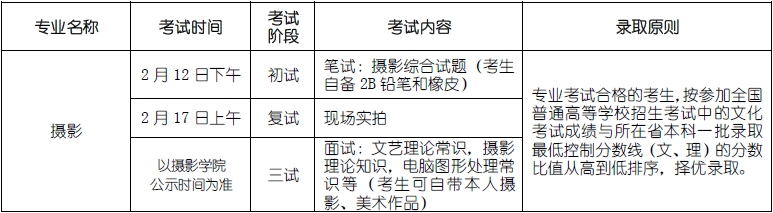 專業(yè)要求: 報考攝影專業(yè)的考生,要求聽力正常,雙目視力均應在5.0以上(經(jīng)矯正4.8以上,新視力表)且無色盲、色弱。