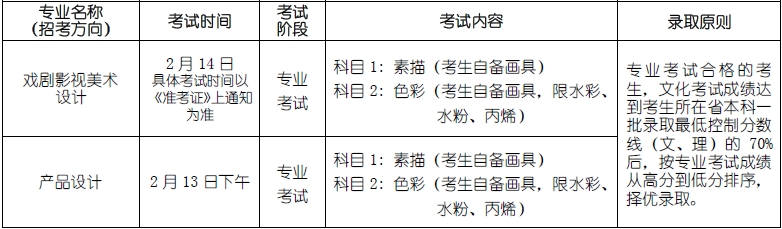 專業(yè)要求: 報考戲劇影視美術(shù)設(shè)計專業(yè)、戲劇影視導演專業(yè)(廣告導演)和產(chǎn)品設(shè)計專業(yè)的考生,均要求聽力正常,且無色盲、色弱。