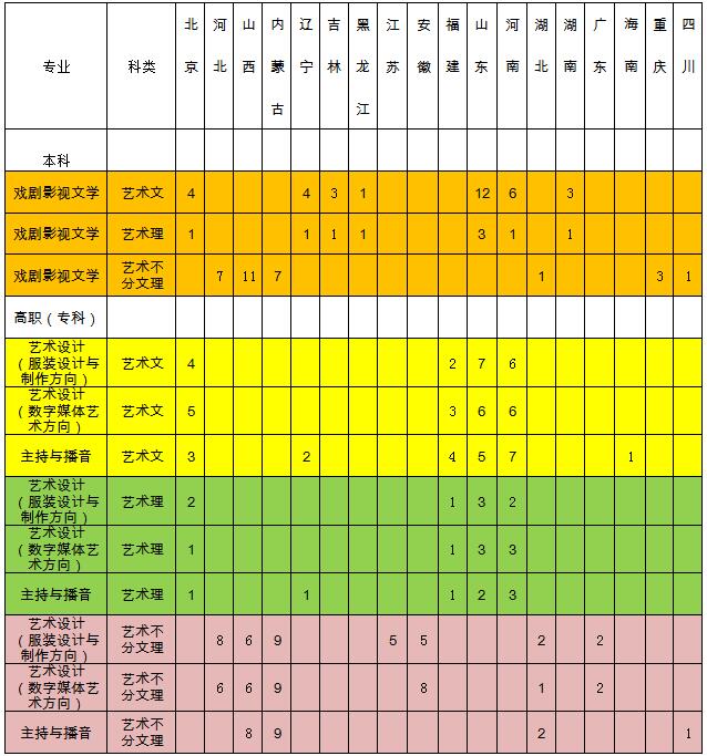 ☆屬我校招生范圍的相關省(市、自治區)考生,在遵循本省(市、自治區)藝術類考試相關規定基礎上,報考我校藝術類專業有效。