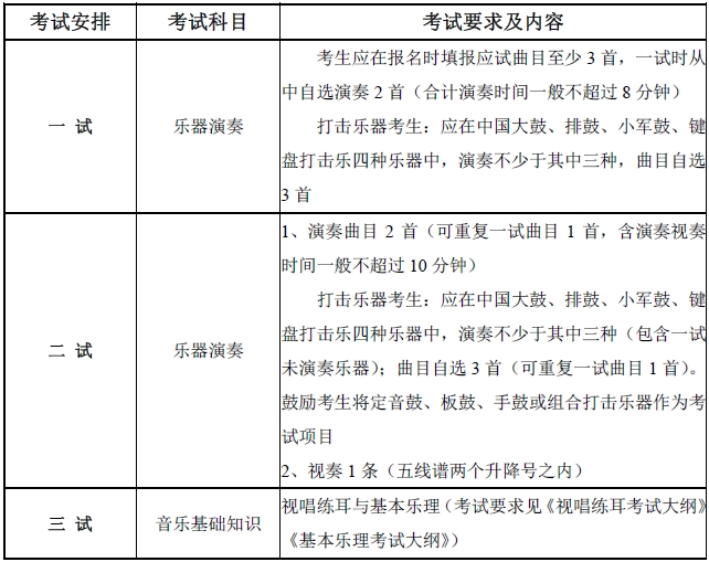 國樂系拉弦、彈撥專業應達到C類程度,吹打專業應達到D類程度。