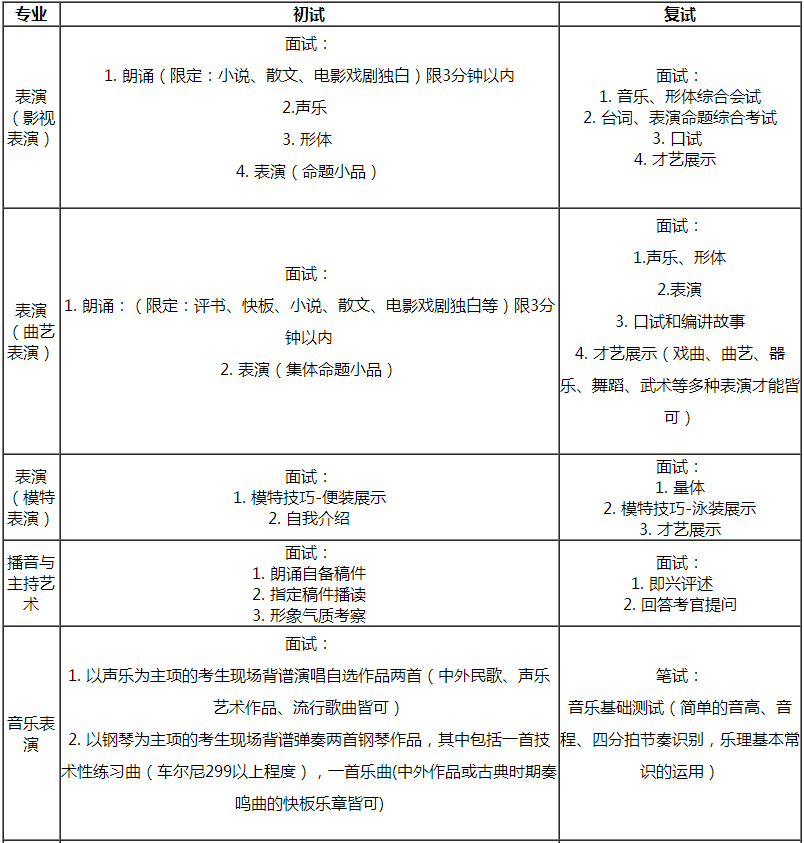 (二)身體健康。除符合教育部、衛生部頒發的《普通高等學校招生體檢工作指導意見》外,報考我校表演類專業還須符合我校專業特點要求: