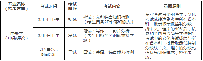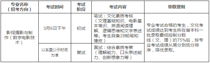 3.考試紀律:報考我校的考生在參加專業考試過程中,必須嚴格遵守國家高考考試紀律及北京電影學院考試規定,對違反考試管理規定和考試紀律,影響考試公平、公正行為者,將依據《中華人民共和國教育法》、《國家教育考試違規處理辦法》、《普通高等學校招生違規行為處理暫行辦法》、《北京電影學院本科招生考試考生須知》所確定的程序和規定進行從嚴查處,并將處理結果書面通報生源所在地省級招生考試機構進行后續處理。
