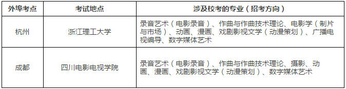 1. 北京考點:考試地點在北京電影學院·校內。考試專業:涉及簡章中列舉的各個專業(招考方向)