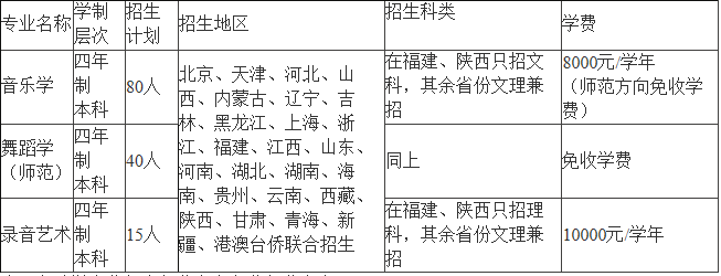 4.我校音樂學院音樂學和舞蹈學(師范)專業在福建、陜西兩省只招收文科生,錄音藝術專業在此兩省只招收理科生;其他招生省份文理兼招,統一排隊。