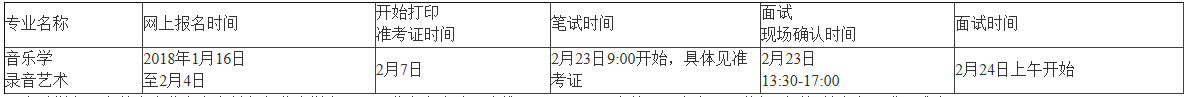 (3)錄音藝術專業考生須本人在2月23日13:30-17:00到我校東一區教學樓C區一層C109教室進行專業面試確認(教學樓西門進入),同時安排具體考試時段。各考試時段有名額限制,額滿即止。