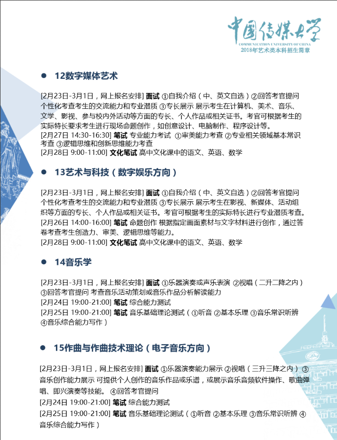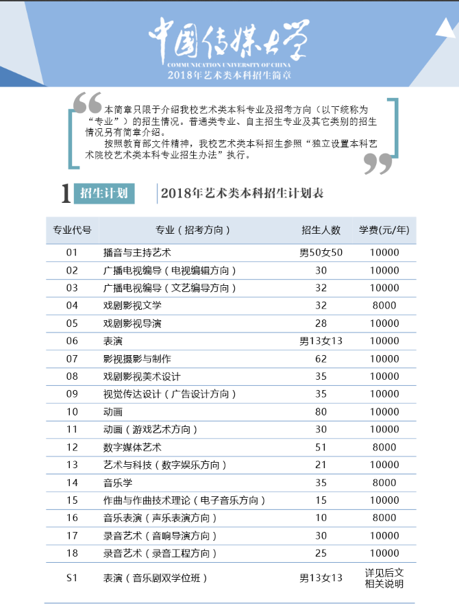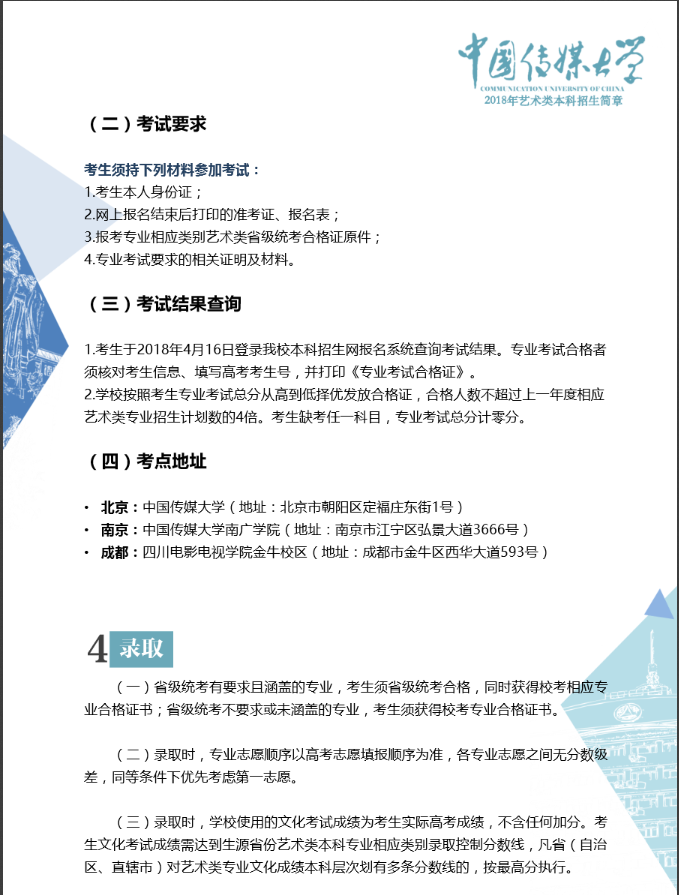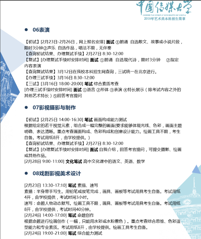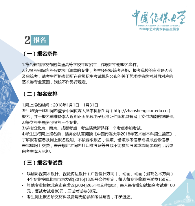 中國(guó)傳媒大學(xué)2018年藝術(shù)類(lèi)招生簡(jiǎn)章