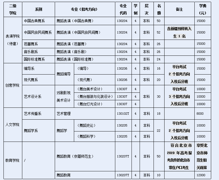 1.北京舞蹈學(xué)院專業(yè)考試合格的考生須參加2019年普通高等學(xué)校招生全國(guó)統(tǒng)一考試(高考)。