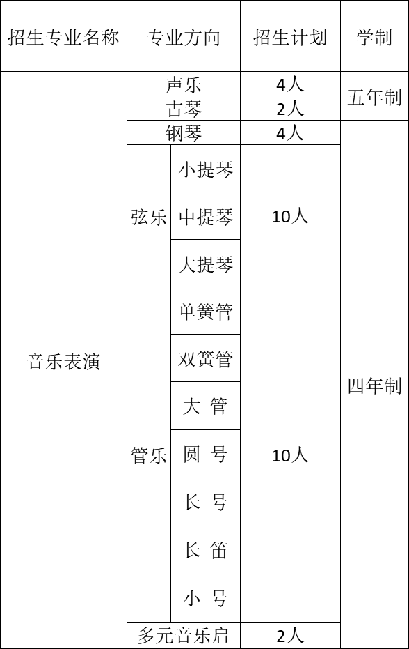 1.音樂表演專業招生不做分省計劃。專業測試結束后,學校可根據實際生源情況調整各專業方向招生計劃并認定合格生,寧缺毋濫。