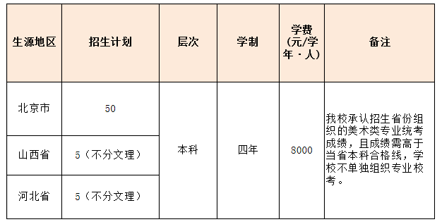 2. 考生須參加生源地省市2020年美術類專業統一考試,成績需高于當省本科合格分數線;