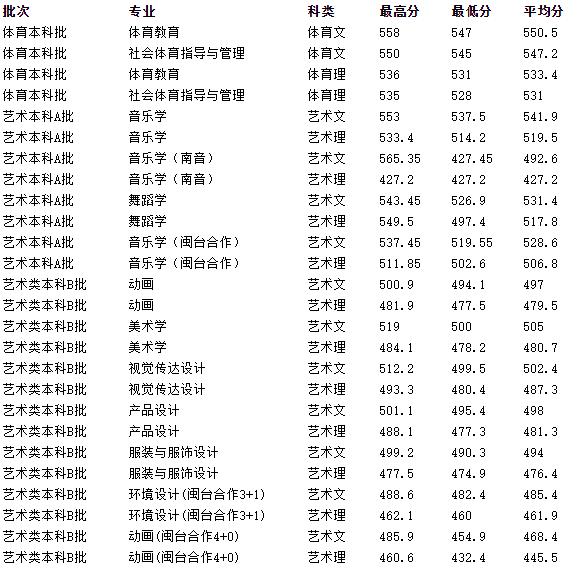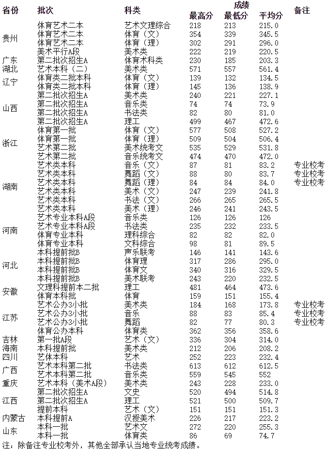 2016年泉州師范學(xué)院年面向福建藝體類錄取分數(shù)統(tǒng)計2016年泉州師范學(xué)院省外藝術(shù)體育類錄取成績統(tǒng)計