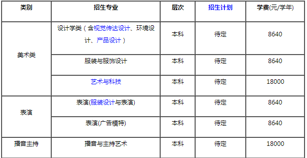 含視覺傳達設計、環境設計、產品設計、服裝與服飾設計、藝術與科技等專業,其中視覺傳達設計、環境設計、產品設計按設計學類招生,進校后再分專業。