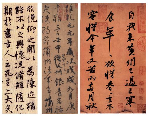 行書:馮承素摹《蘭亭序》、顏真卿《祭侄稿》、蘇軾《黃州寒食詩(shī)帖》、趙孟頫《洛神賦》、米芾《蜀素帖》。