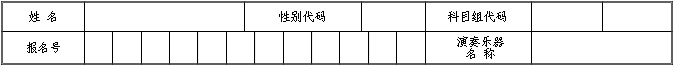 | 音 樂 類 | 基礎 科目 | 聽音記譜 | 筆試 | 2016年12月 12日 | 14∶30-15∶20 |