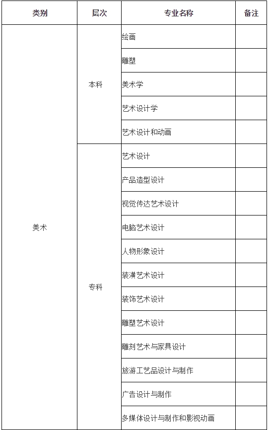 注:根據教育部有關要求,學前教育、藝術教育、服裝設計與工藝教育、裝潢設計與工藝教育、廣播電視新聞學、廣告學、媒體創意、寶石及材料工藝學、工業設計、影視藝術技術、數字媒體藝術、建筑學、景觀建筑設計、包裝工程、服裝設計與工程、公共事業管理及文化產業管理等17種含有藝術屬性的專業,高校須經教育部批準后方可按藝術類專業招生辦法招生。