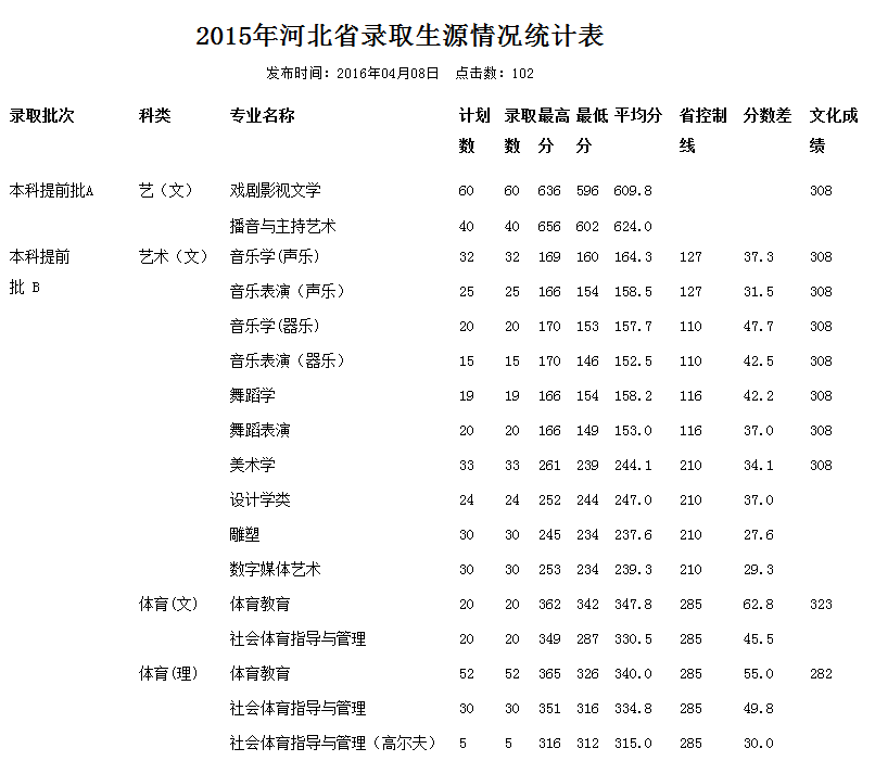 美術(shù)學(xué)、設(shè)計學(xué)類、音樂與舞蹈學(xué)類專業(yè)考生文化課成績達到所在省藝術(shù)類文化錄取控制分數(shù)線以上,根據(jù)考生志愿,按我院專業(yè)測試成績排序從高到低錄取。