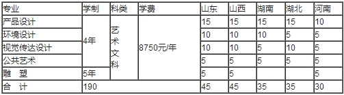 注:1、只招藝術文科類考生,若生源省份美術設計類不區分藝術文、藝術理,則不作要求。