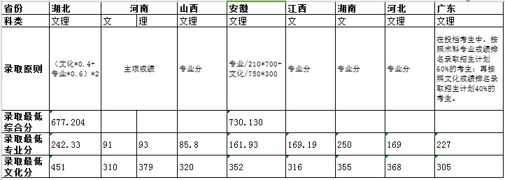 華中師范大學2016年音樂、舞蹈專業錄取分數統計