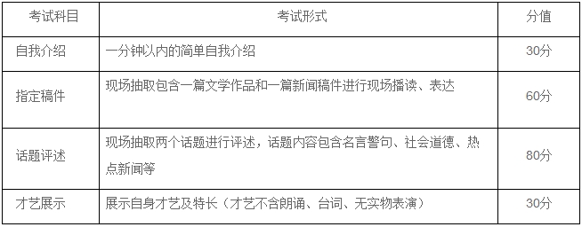 2.播音與主持藝術(shù)專業(yè)考試科目及分值(總分200分)