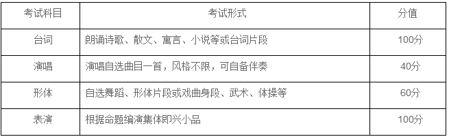 1.表演專業(yè)考試科目及分值(總分300分)