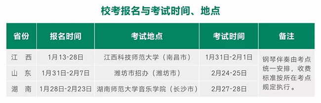 專業校考:湖南省、江西省考生在參加所在省專業統考并取得省級相關專業統考合格的基礎上,須參加我校組織的專業校考;山東省考生只須參加我校專業校考。