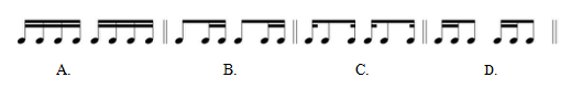 請聽音響(播放兩遍),選擇與所聽內容相符的節(jié)奏型組合( )