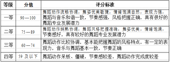 考查考生身體協(xié)調性、舞蹈表演基本素質和對舞蹈作品的表現(xiàn)力,要求考生能夠準確把握舞蹈作品基本韻律和風格特點,具備舞蹈的身體素質、技術、情感和形象表現(xiàn)力。