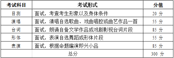 普通高校藝術專業招生考試戲劇與影視學類(表演專業)全省統一考試是全國普通高考的重要組成部分。該統考主要通過測試考生是否具備基本的演員素質(感受力、想象力、表現力等),是否具有良好的形象條件(身高、五官、體型)及一定的形體和聲音表現能力,選拔出具有一定戲劇影視表演基本條件和學習潛能的藝術類合格新生。