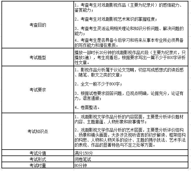 戲劇影視文學專業招生考試由下面兩門科目的筆試組成,滿分300分。
