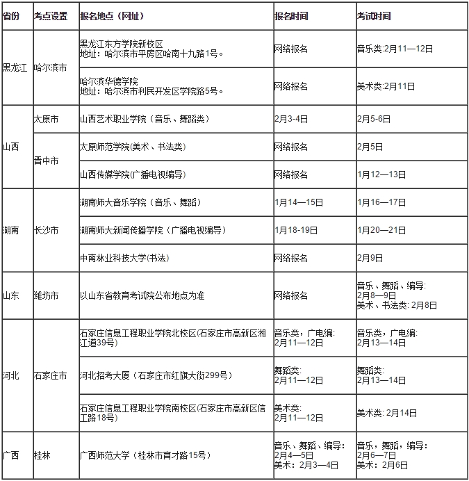 | 舞蹈學、舞蹈編導 | 淮陰師范學院音樂學院 | 2017年1月5日-19日 | 2017年1月20-21日 |