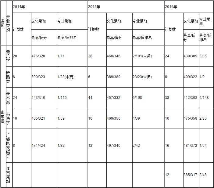 淮陰師范學院外省藝術類專業歷年錄取情況