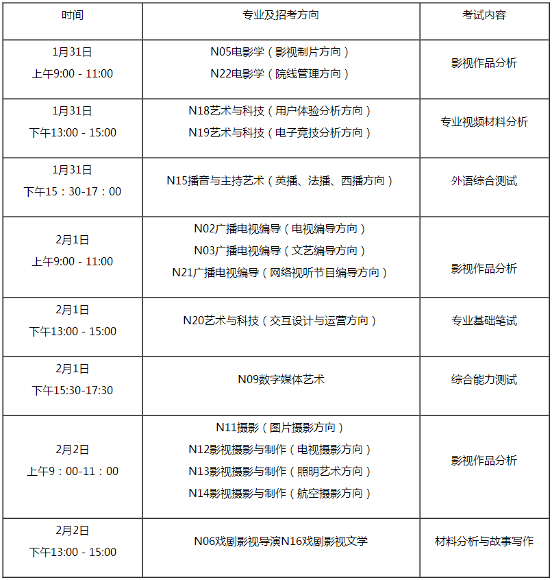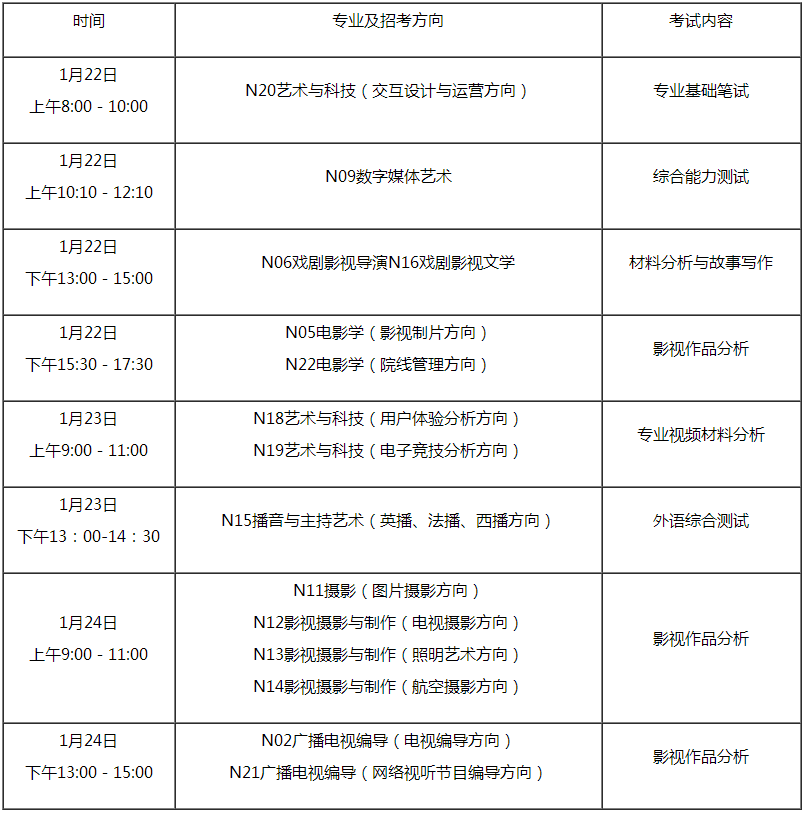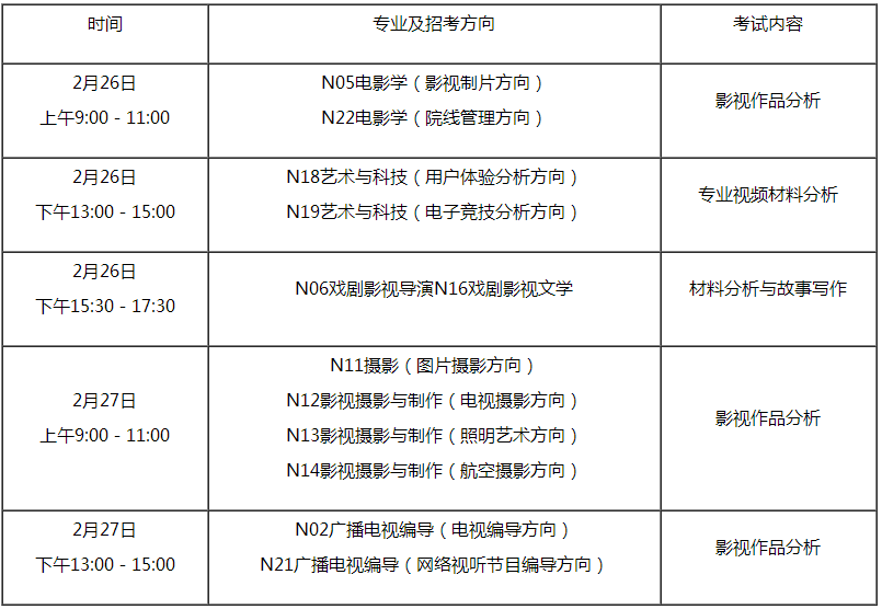 3.考生報考“影視攝影與制作”、“廣播電視編導”和“電影學”專業,進校后將以影視攝影與制作(電視攝影方向)、廣播電視編導(電視編導方向)、電影學(影視制片方向)進行培養。