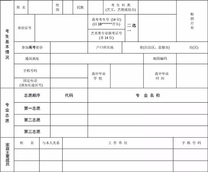 (3)照片??忌救私谝淮缯婷夤谕灼掌?。報考1個專業3張,2個專業4張,3個專業5張,每份報名表和準考證都要貼上照片。