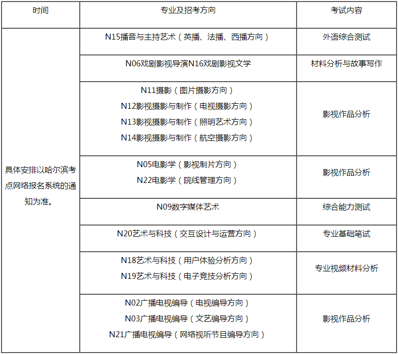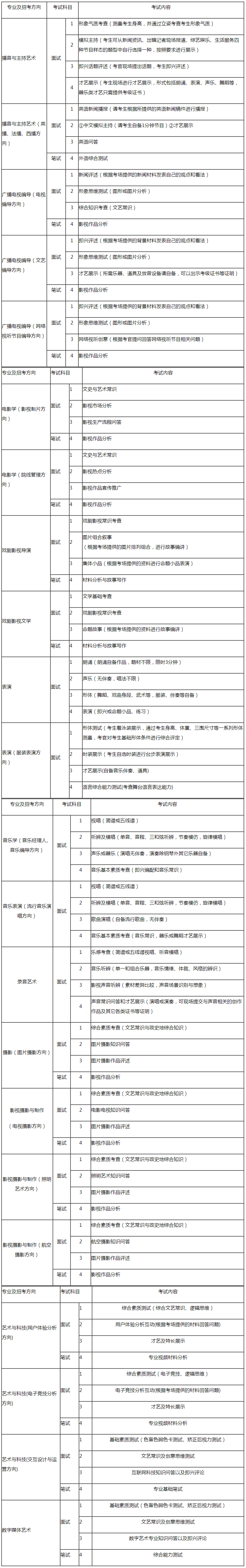 (六)表演(服裝表演方向)、數字媒體藝術、藝術與科技(交互設計與運營方向)及播音與主持藝術(英播、法播、西播方向)四個專業在北京不設考,請報考該專業的北京考生選擇其他考點報名考試。